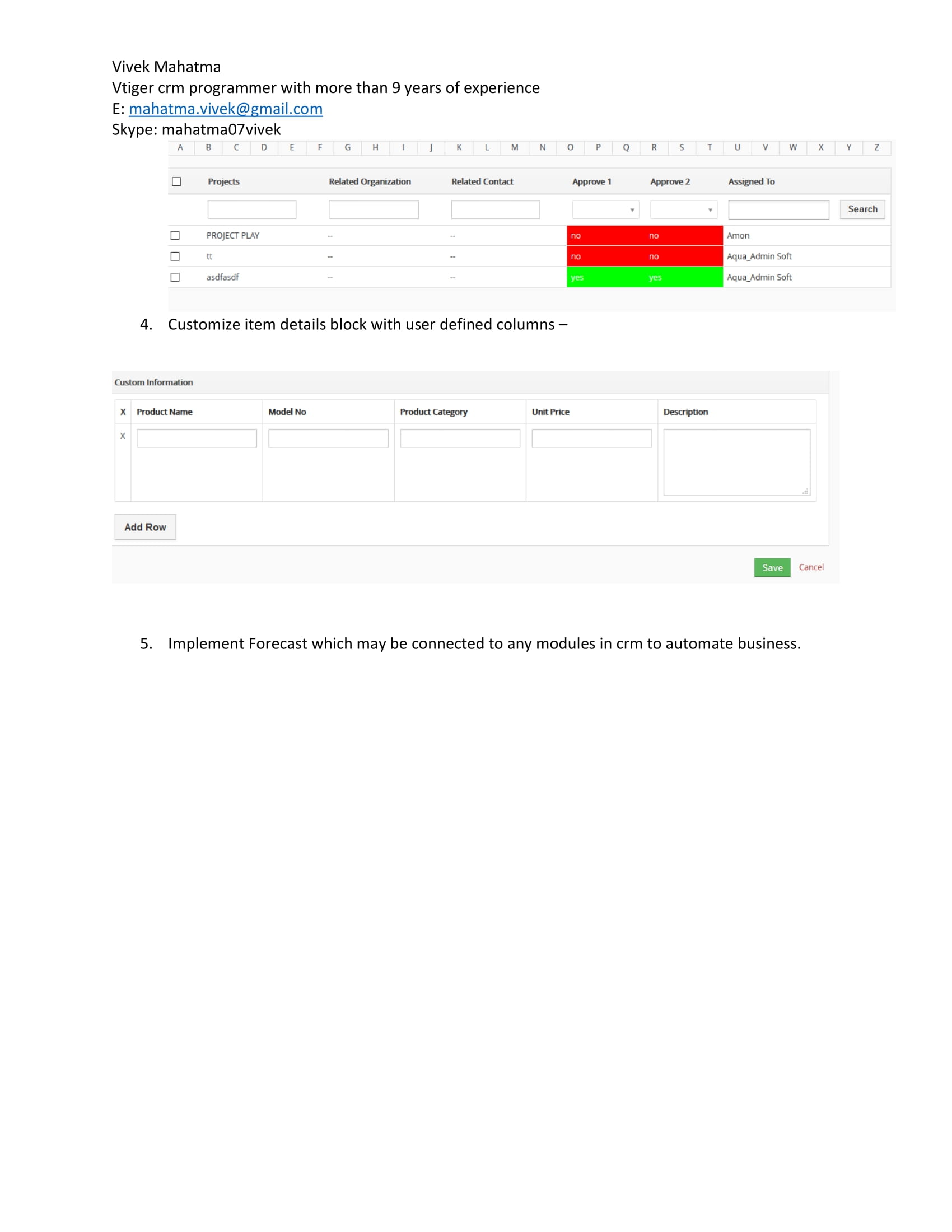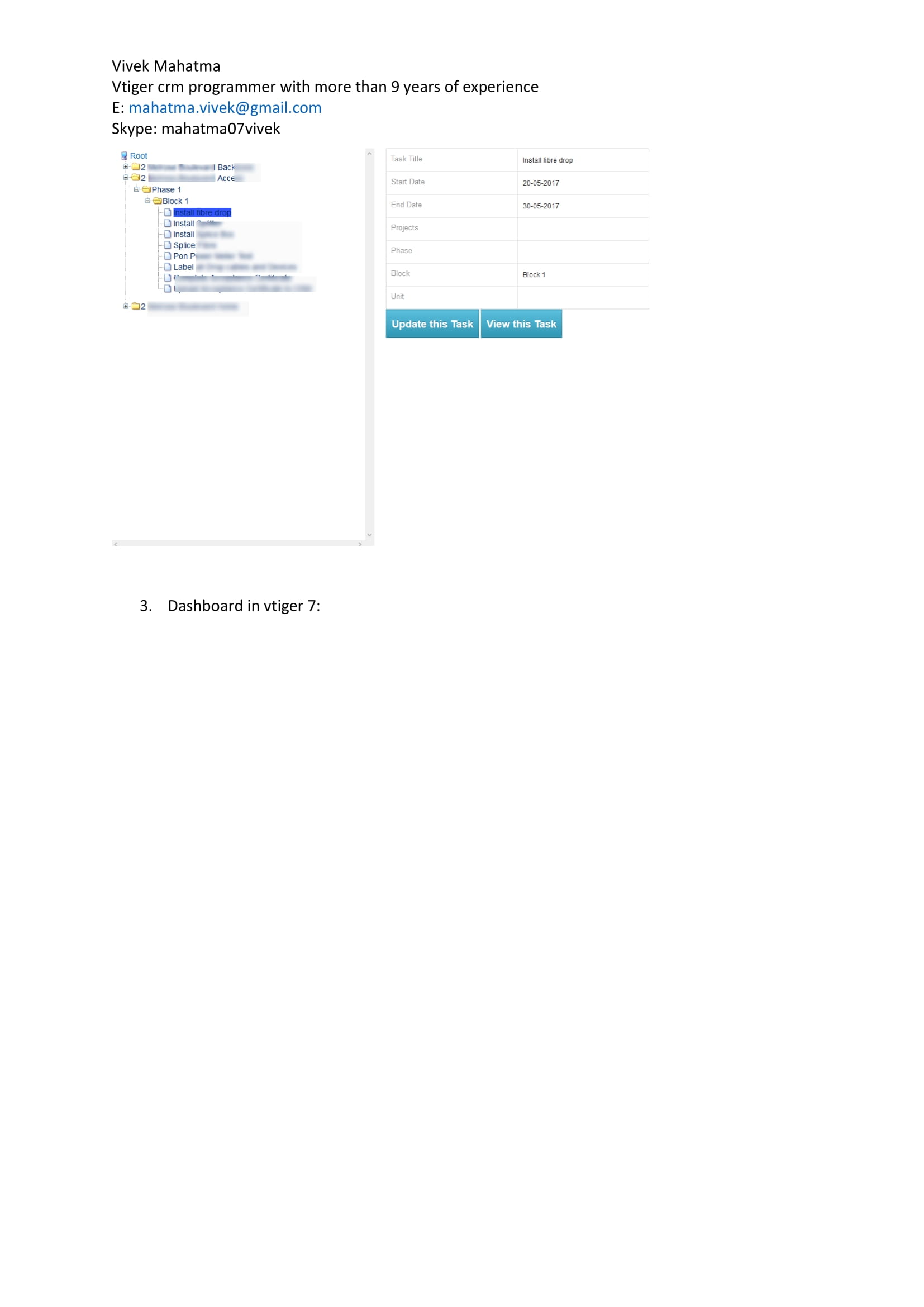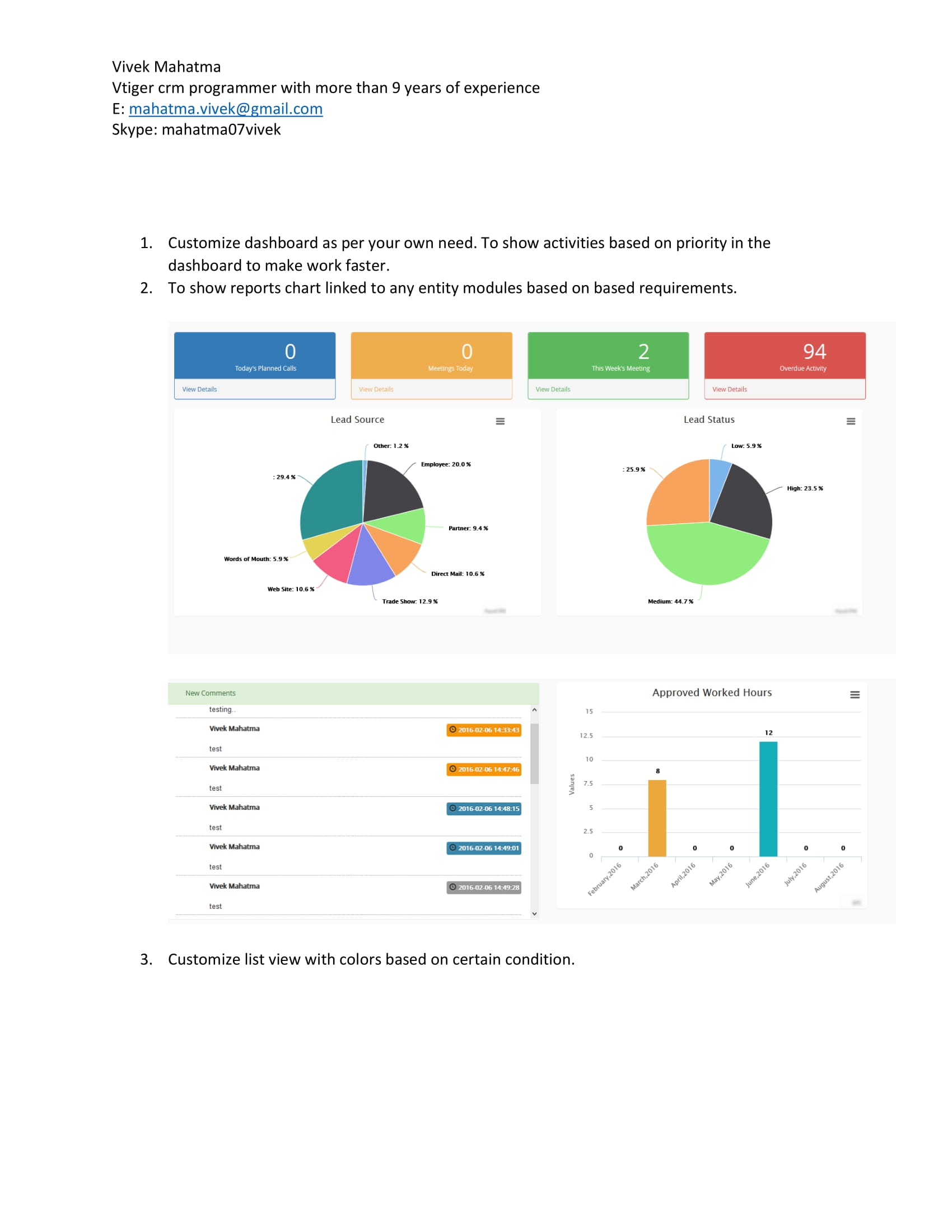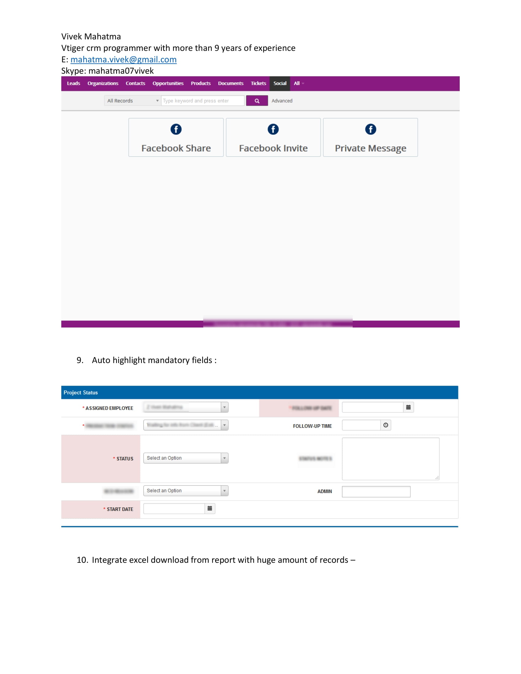 " I want to give 5 star positive feedback to this man, its awesome he help me when i need and its very responsive. I recommend it to everyone who need help or custom module for Vtiger CRM Vivek Mahatma you are the best.Thank you!"