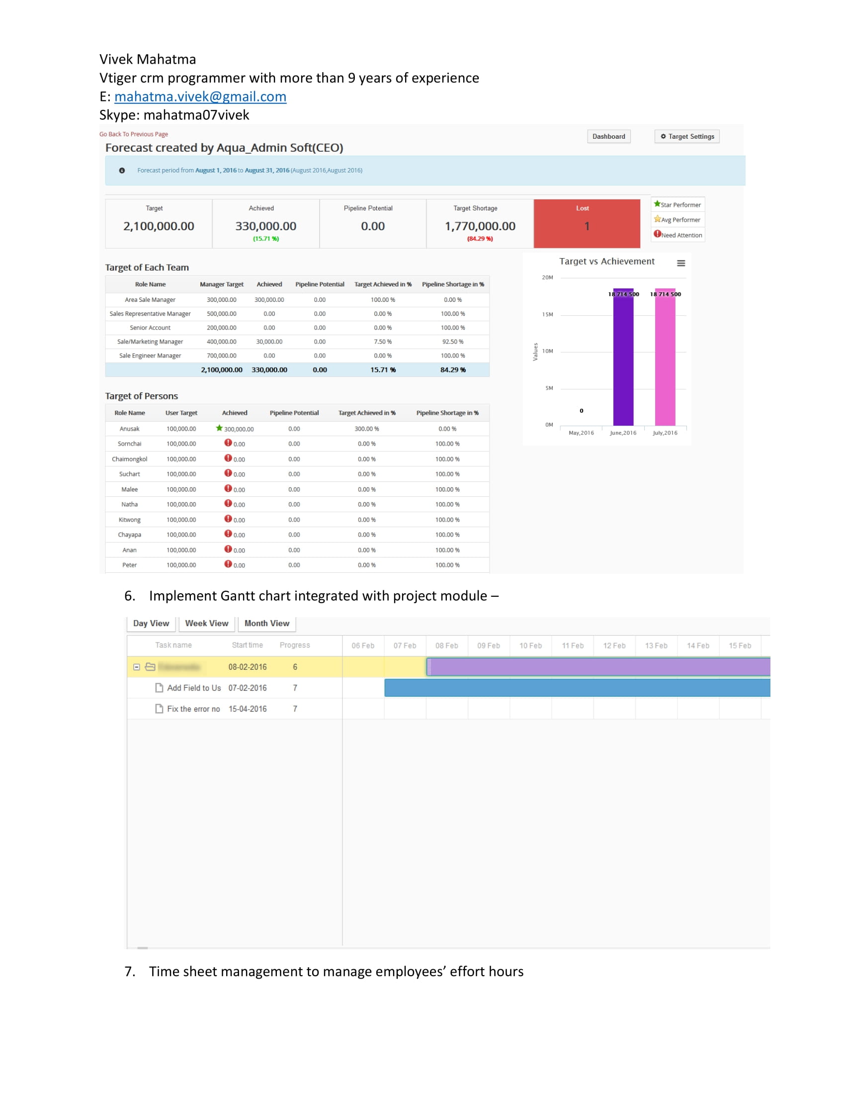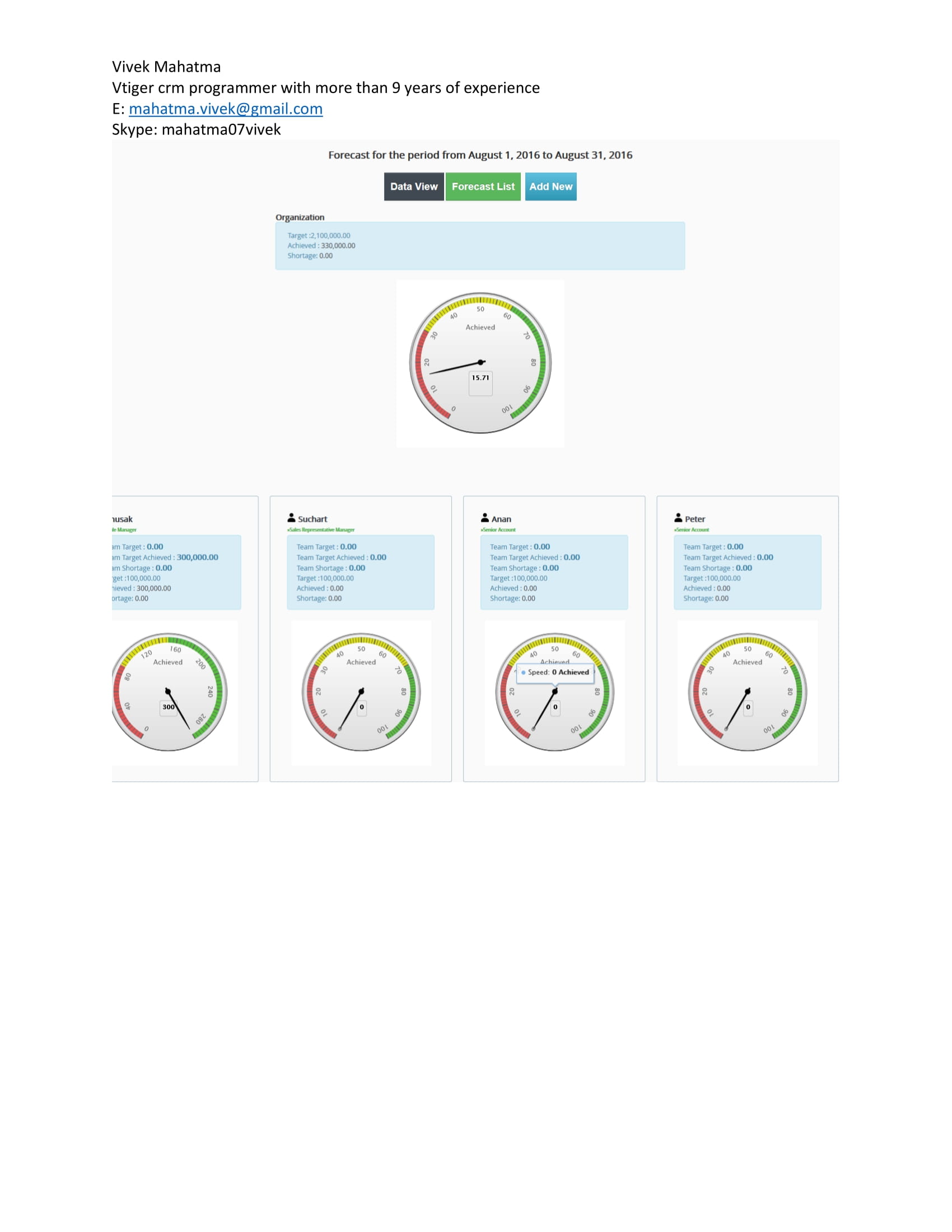 "Really Mr vivek is a very clever , helpful and trusted man his knowledge with Vtiger exceeds most of programmers I have meet before and I advice anyone wants any development or support to contact and trust in him and i hope that i will keep his contact with my company every time we have a problem and I will be glade if I will meet him in future to thank him for his technical professional support . thanks to Mr vivek"